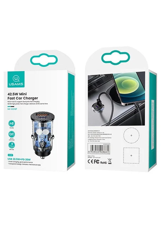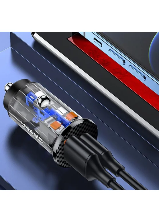 АЗУ Usams US-CC127 C25 42.5W + PD 20W Mini Прозрачный / Черный