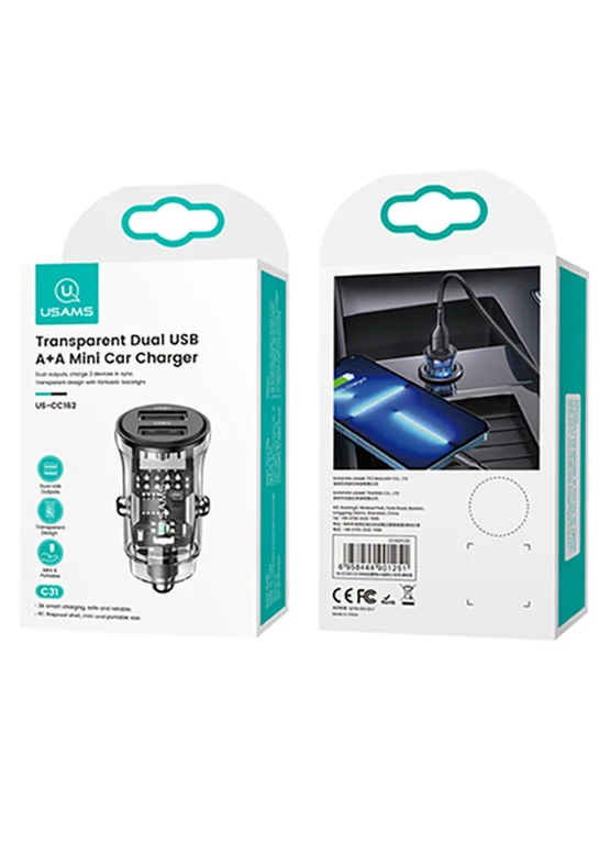 АЗУ Usams US-CC162 C31 2 Ports A+A Transparent black