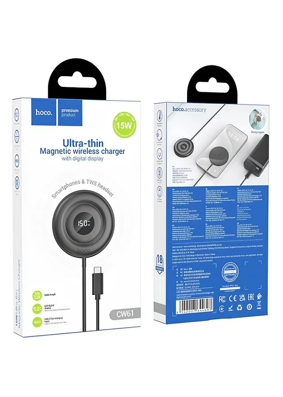 БЗУ Hoco CW61 Phantom magnetic with digital display Black
