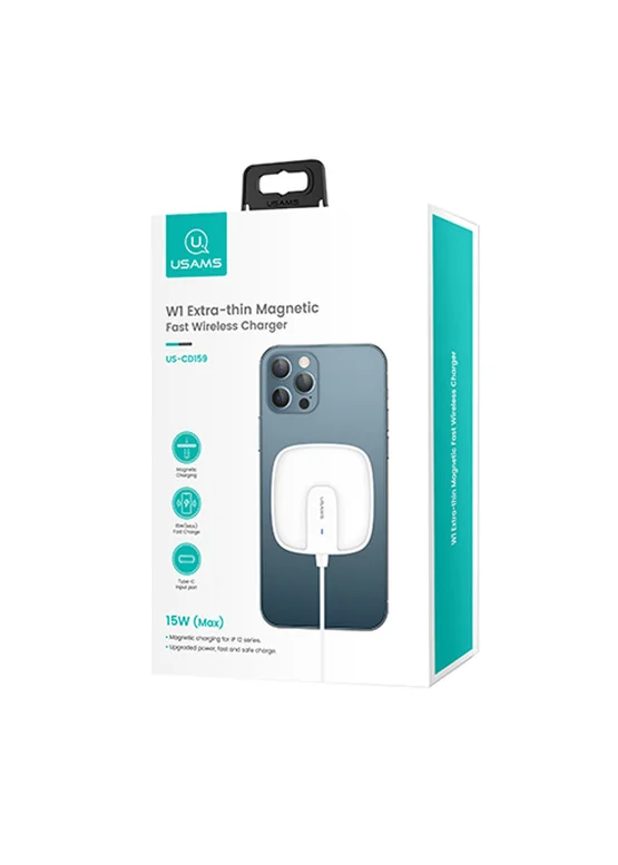 БЗУ Usams US-CD153 Ultra-thin Magnetic With Cable Белый