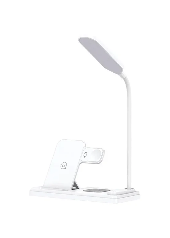 Беспроводное многофункциональное устройство, которое объединяет в себе беспроводную зарядку для смартфонов, наушников и часов, а также настольную лампу.