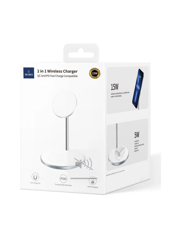 Это стильное и функциональное беспроводное зарядное устройство 2 in 1 обеспечивает быструю и безопасную зарядку ваших устройств.