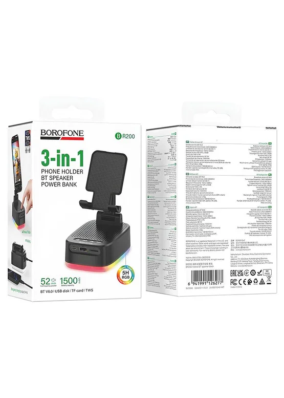 Bluetooth Колонка Borofone BR200 Marea + Power Bank 1500mAh + держатель Black