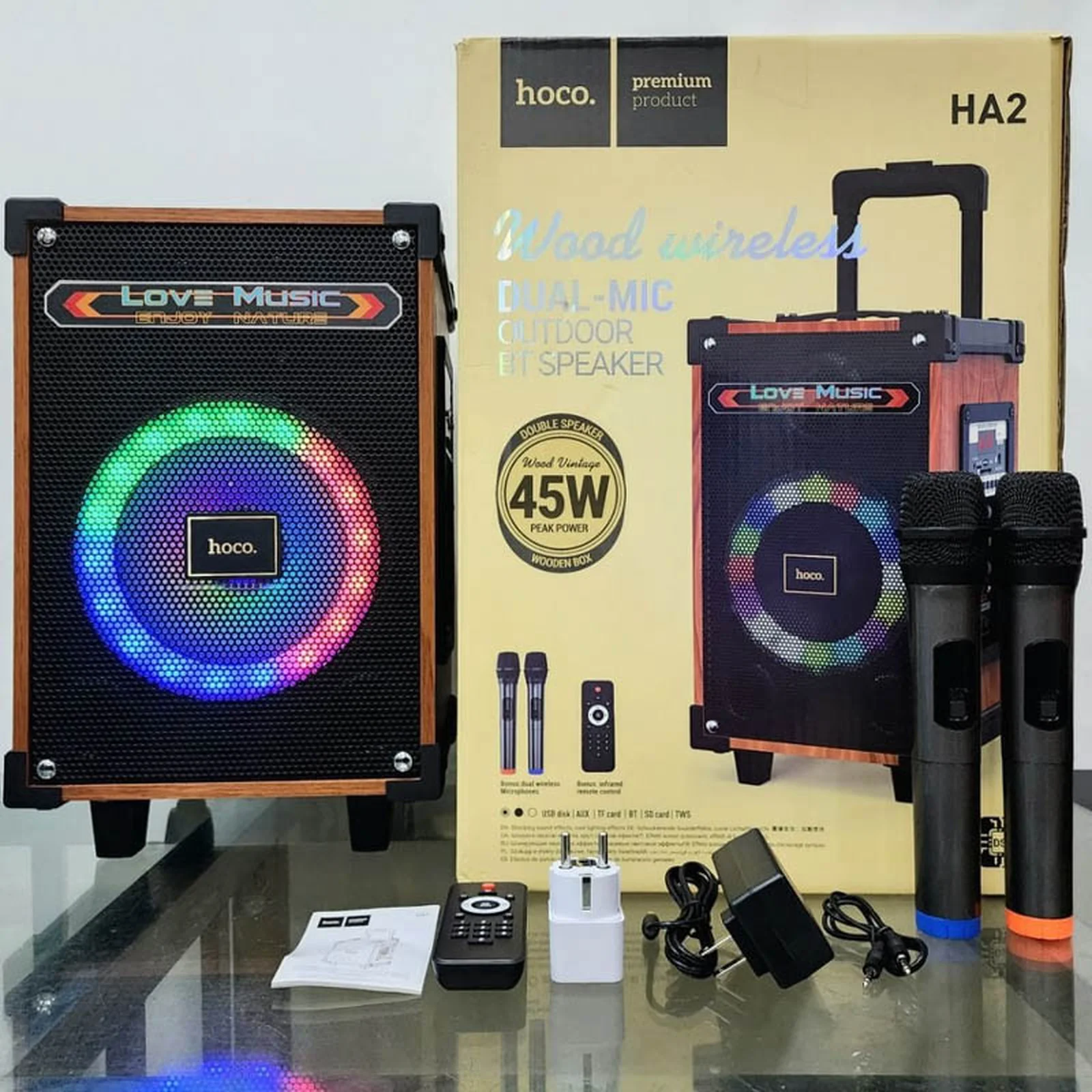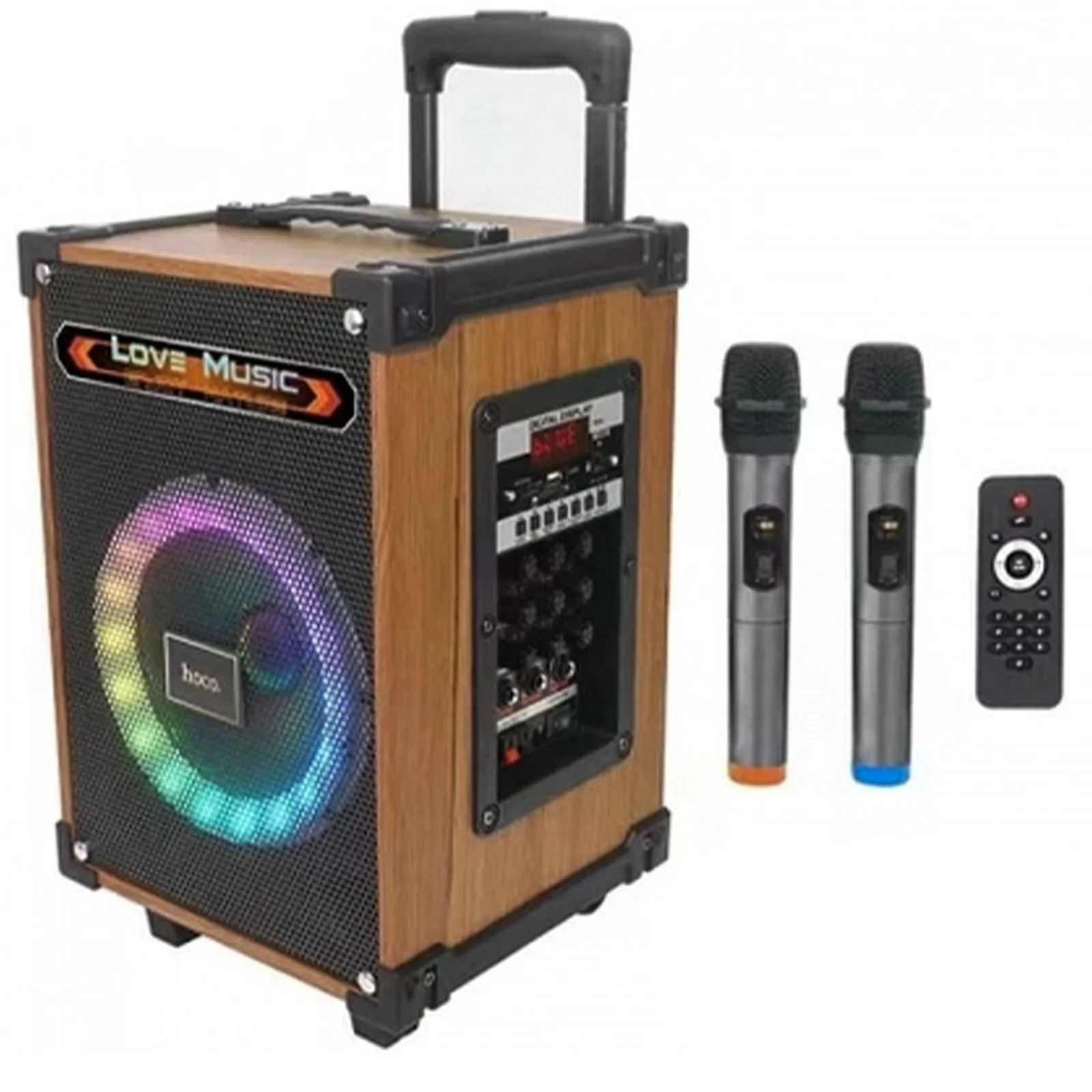 Bluetooth колонка Hoco HA2 Wave + 2 микрофона Wooden pattern