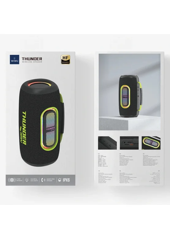 Устройство воспроизводит музыку с USB- или TF-карт объёмом до 32 ГБ, а встроенный аккумулятор (3×1800 мАч) обеспечивает до 6 часов работы.