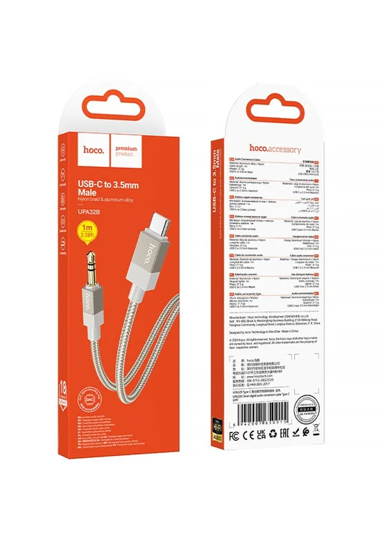Аудио кабель Aux Hoco UPA32B Clever digital (Type-C to AUX 3.5mm) (1m) Gold