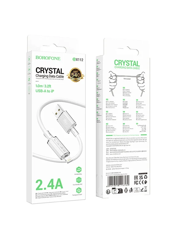 Дата кабель Borofone BX112 Lemon USB to Lightning 2.4A (1m) White