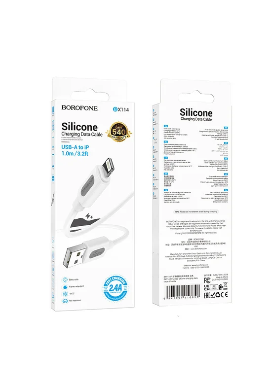 Дата кабель Borofone BX114 Structure USB to Lightning 2.4A (1m) White