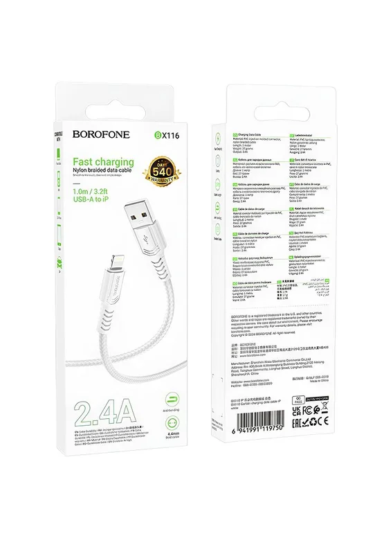 Дата кабель Borofone BX116 Certain USB to Lightning 2.4A (1m) White
