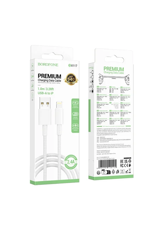 Дата кабель Borofone BX117 Source USB to Lightning 2.4A (1m) White