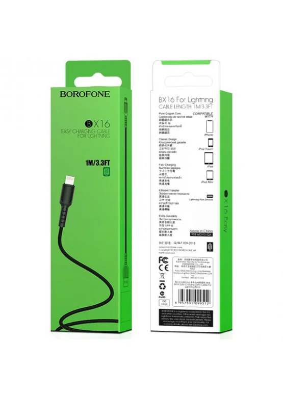 Borofone BX16 – это не просто кабель, а надежный спутник в вашем стремительном ритме жизни. Он пропитан духом надежности и долговечности, напоминая вам о том, что вы выбираете продуктивность и комфорт. Его мощь в передаче данных и зарядке заставляет все работать быстрее и лучше, словно маленький двигатель, скрытый под капотом вашего устройства.