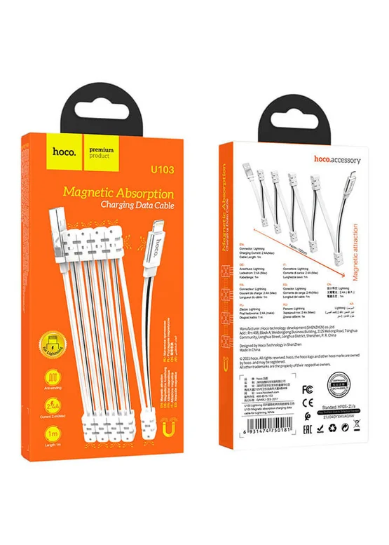Дата кабель Hoco U103 Magnetic Absorption USB to Lightning (1m) White