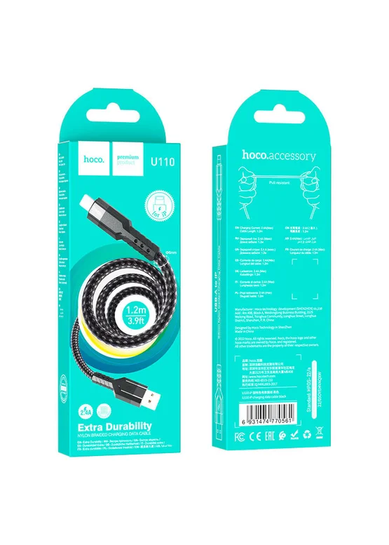 Дата кабель Hoco U110 charging data sync USB to Lightning (1.2 m) Черный