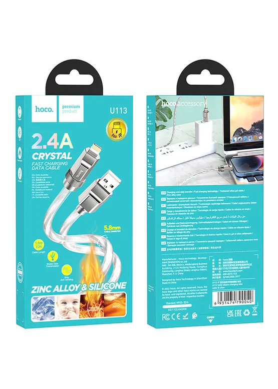 Дата кабель Hoco U113 Solid 2.4A USB to Lightning (1m) Silver