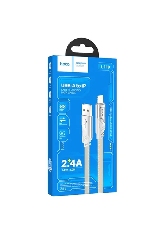 Дата кабель Hoco U119 Machine charging data USB to Lightning (1.2m) Gray