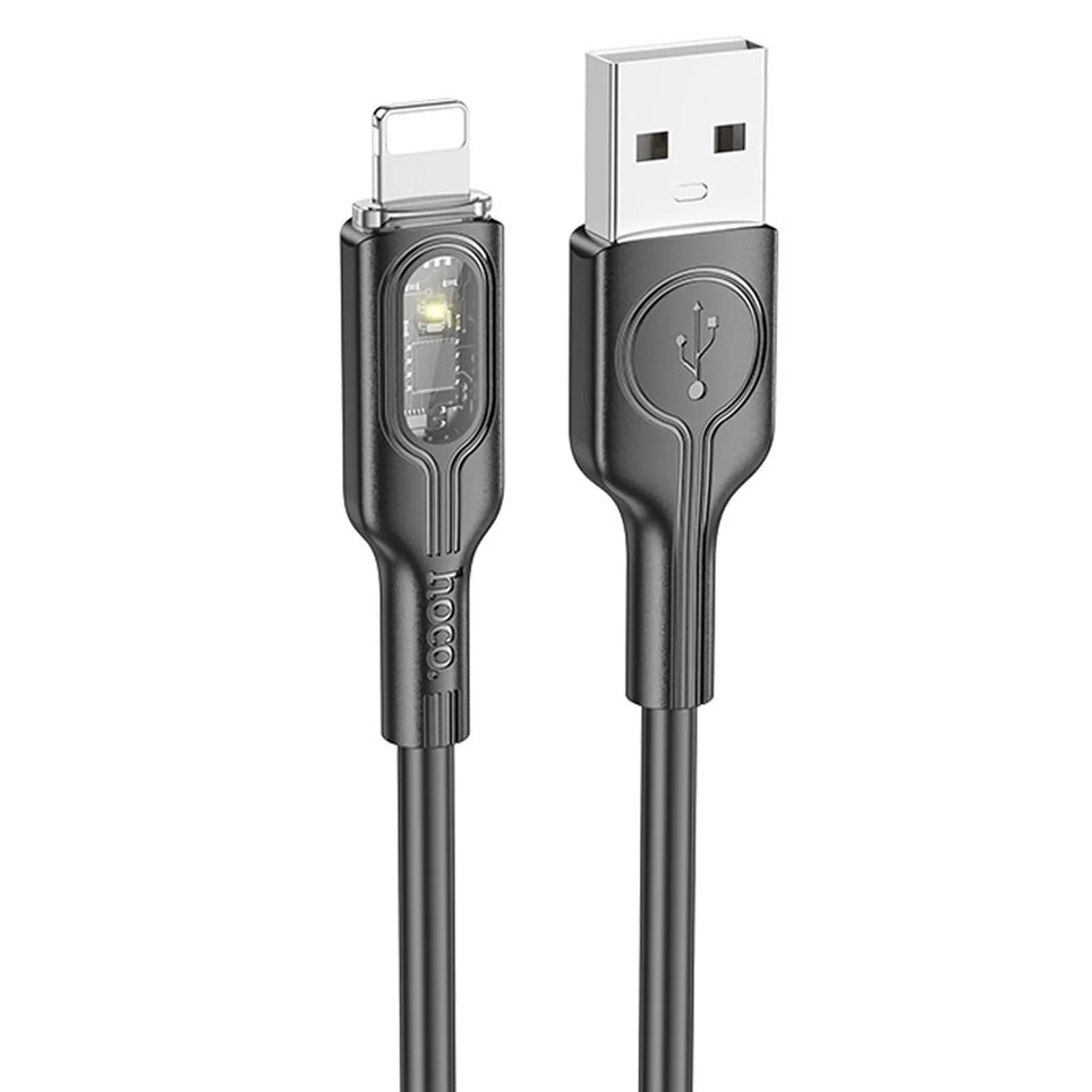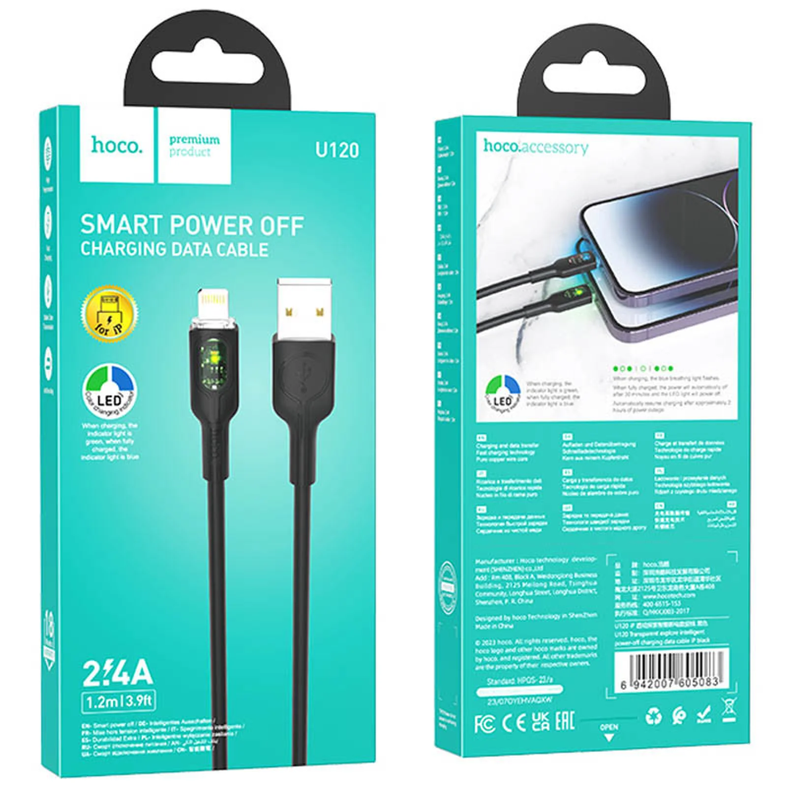 Дата кабель Hoco U120 Transparent explore intelligent power-off USB to Lightning (1.2m) Black
