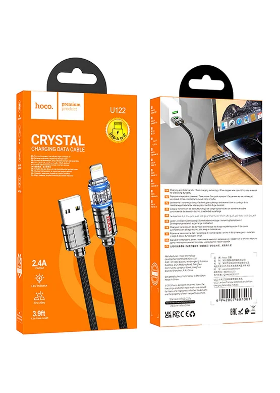 Дата кабель Hoco U122 Lantern Transparent Discovery Edition USB to Lightning Black