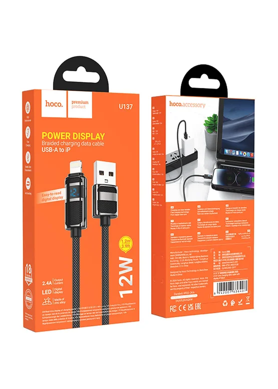 Дата кабель Hoco U137 Line with display USB to Lightning 2.4A/12W (1.2m) Black