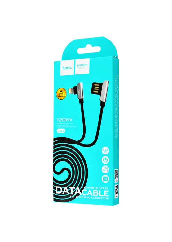 Дата кабель Hoco U42 Exquisite Steel Lightning cable (1.2m) (Черный)