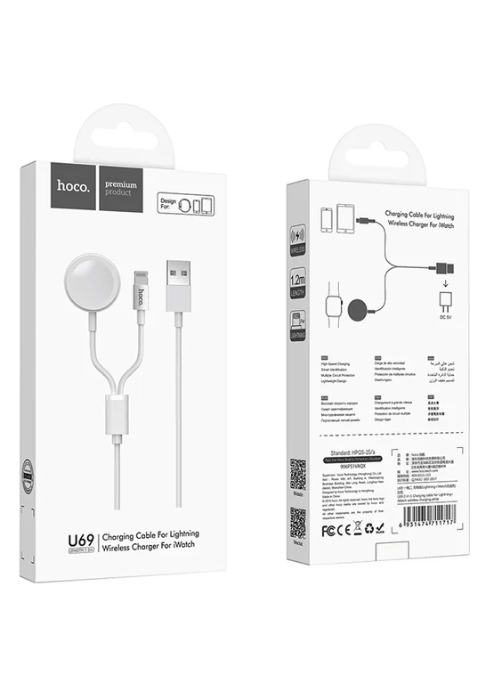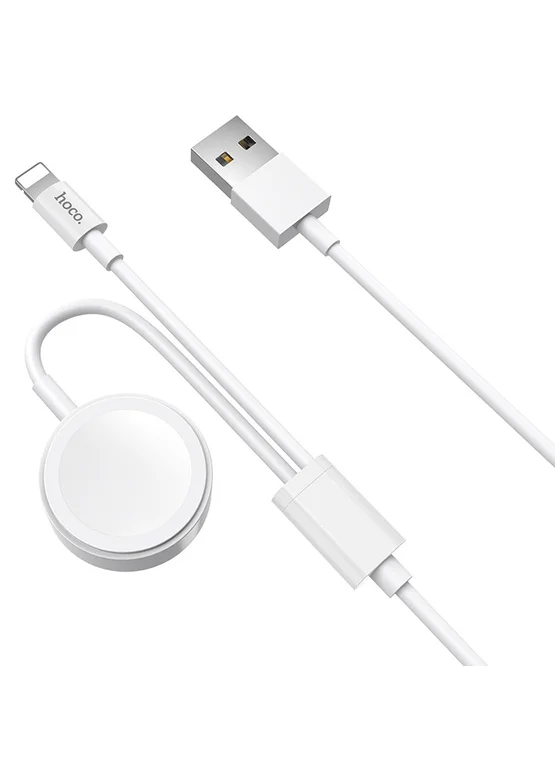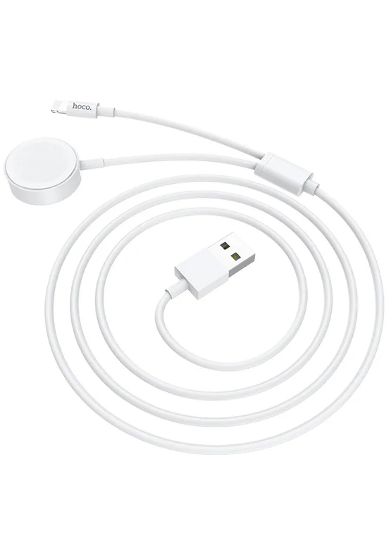 Дата кабель Hoco U69 2in1 lightning + зарядное устройство для Apple Watch (1.2М) (Белый)