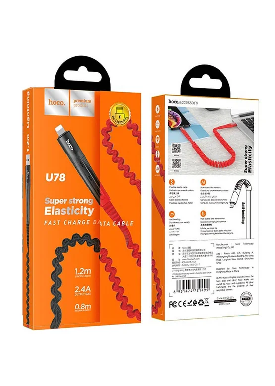Дата кабель Hoco U78 "Cotton treasure elastic" lightning (1.2М) (Черный)