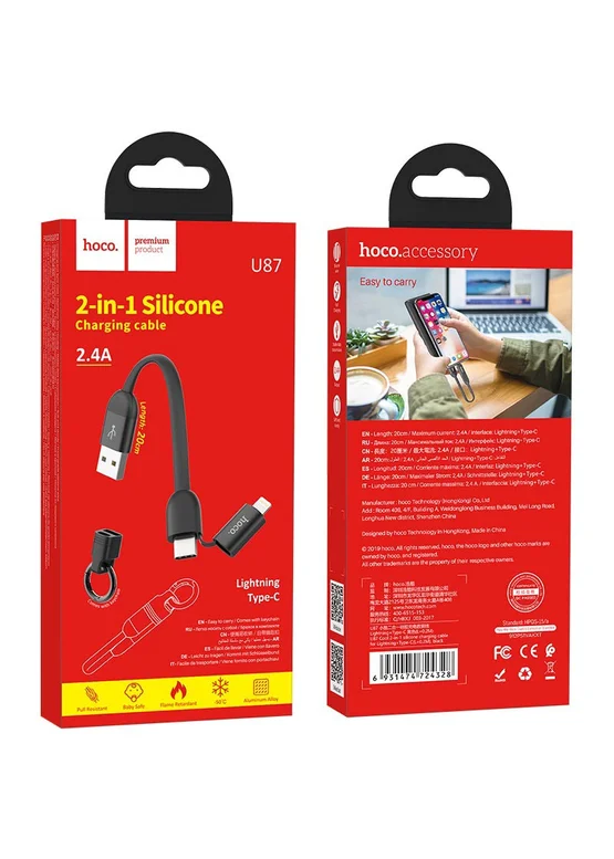 Дата кабель Hoco U87 "Cool" 2in1 Lightning-Type-C (0,2М) (Черный)