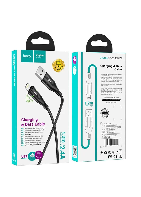 Дата кабель Hoco U93 "Shadow" Lightning (1.2 m) (Черный)