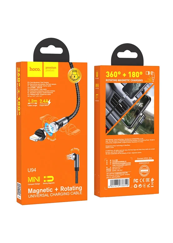 Дата кабель Hoco U94 "Universal magnetic" Lightning (1.2 m) (Черный)