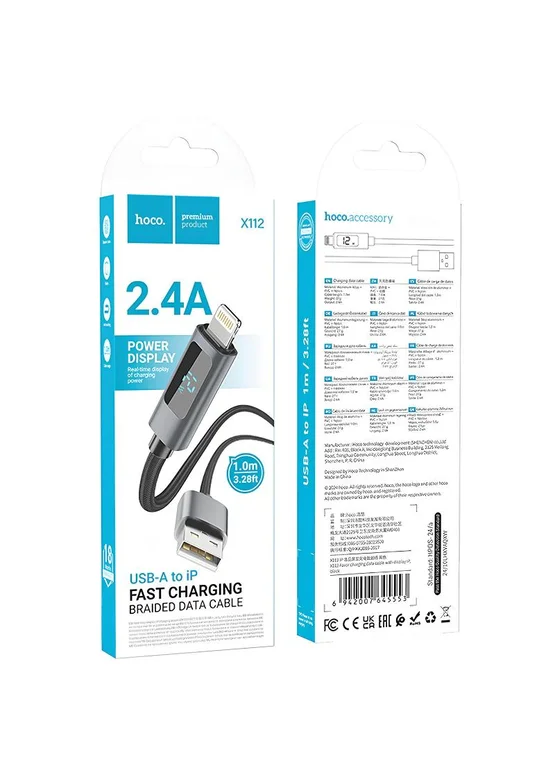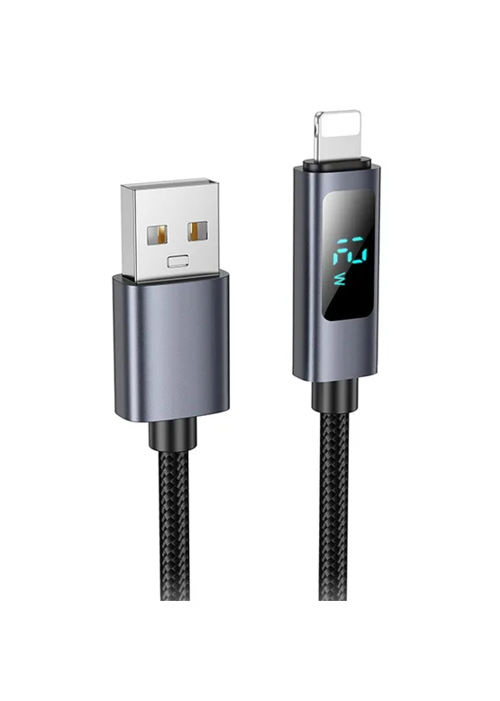 Дата кабель Hoco X112 Favor with display USB to Lightning 2.4A (1m) Black