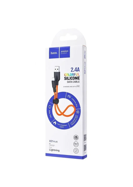 Дата кабель Hoco X21 Plus Silicone Lightning Cable (0.25m) Black / Orange