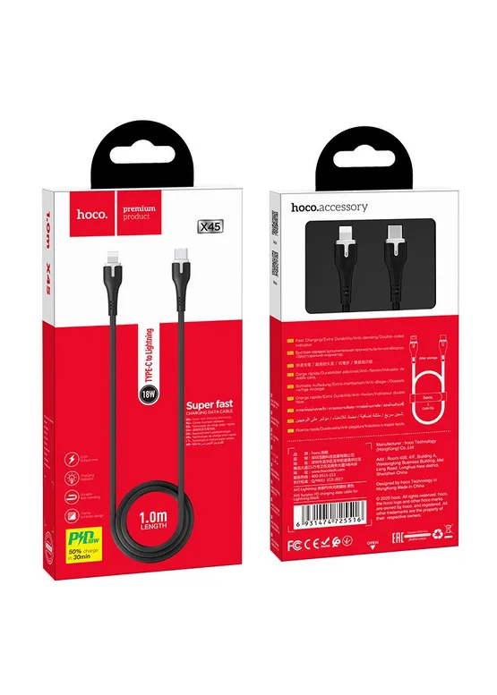 Дата кабель Hoco X45 "Surplus" Type-C to Lightning (1m) Черный