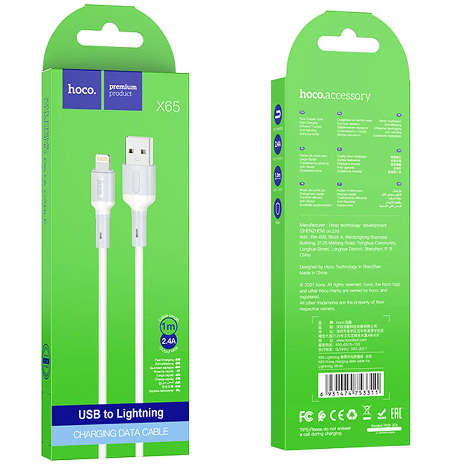 Дата кабель Hoco X65 "Prime" USB to Lightning (1m) Белый