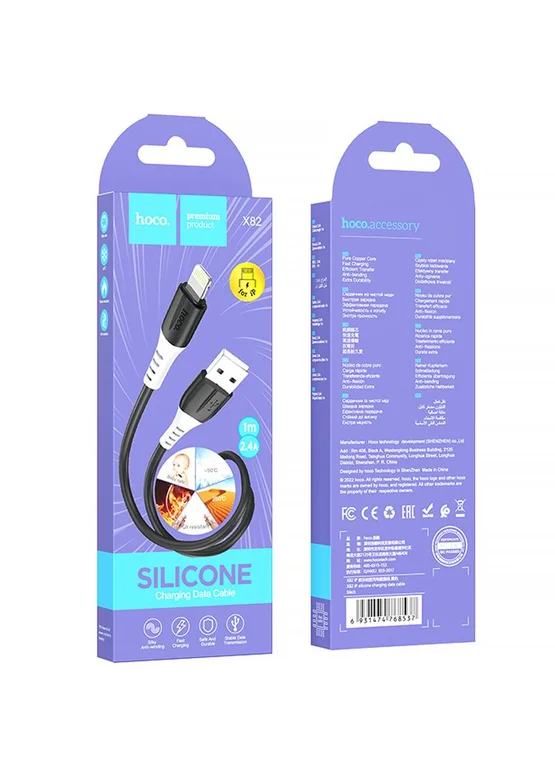 Дата кабель Hoco X82 Silicone USB to Lightning 2.4A (1m) Black