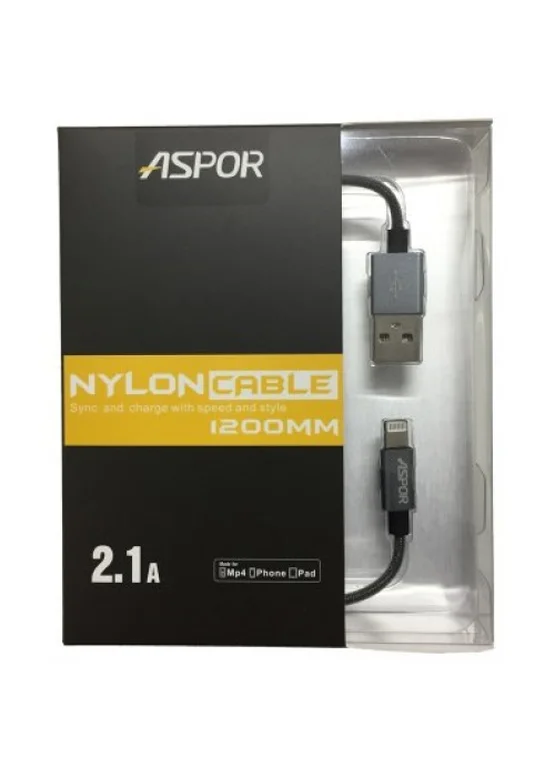 Lightning USB кабель "Aspor" Nylon 2m для iPhone/iPod/iPad