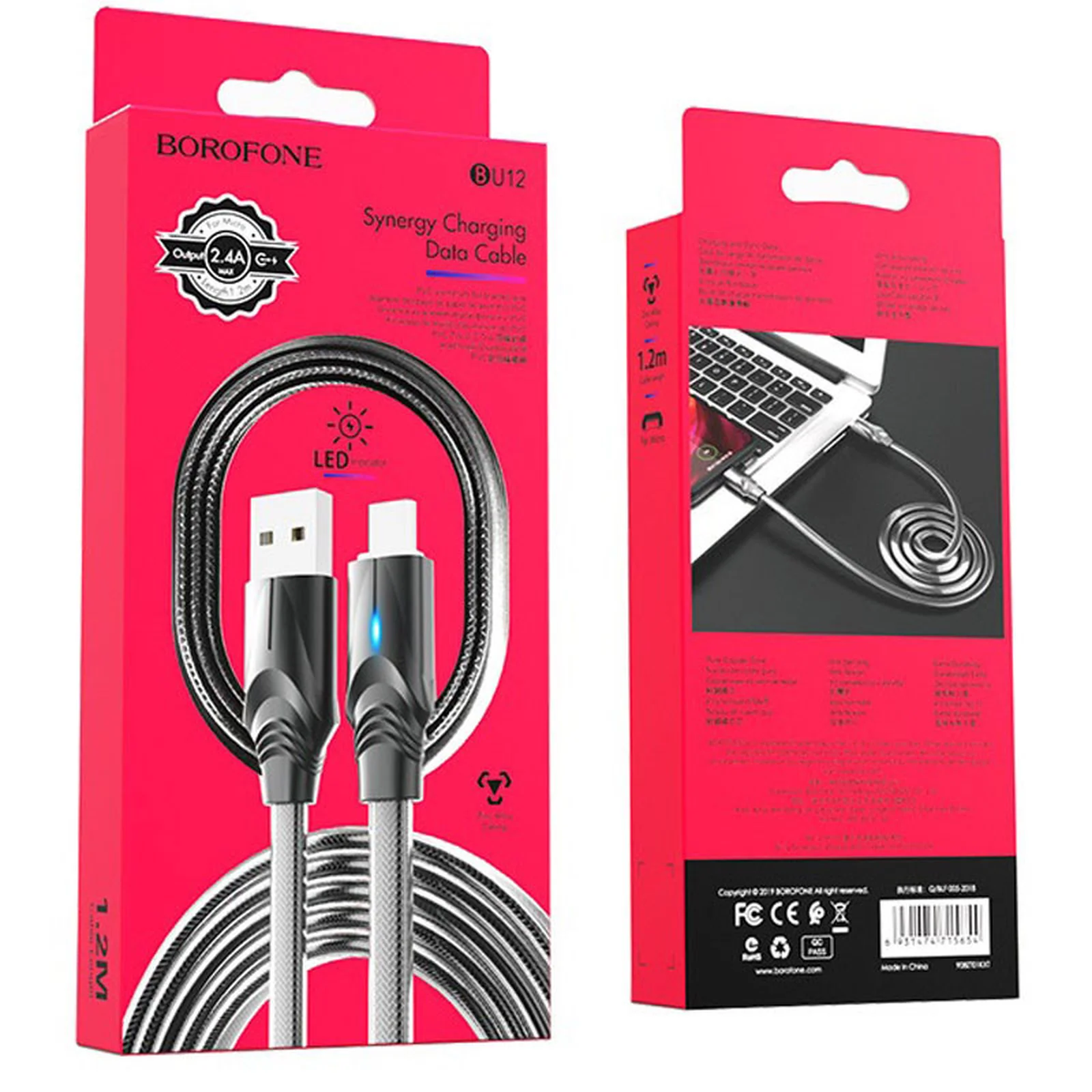 Дата кабель Borofone BU12 Synergy USB to MicroUSB (1.2m) Черный