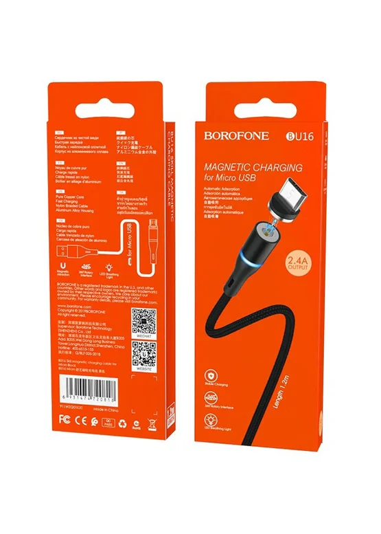 Дата кабель Borofone BU16 Skill magnetic USB to MicroUSB (1.2m) Черный