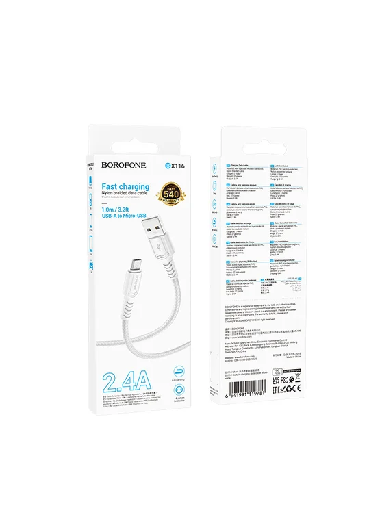Дата кабель Borofone BX116 Certain USB to MicroUSB 2.4A (1m) White