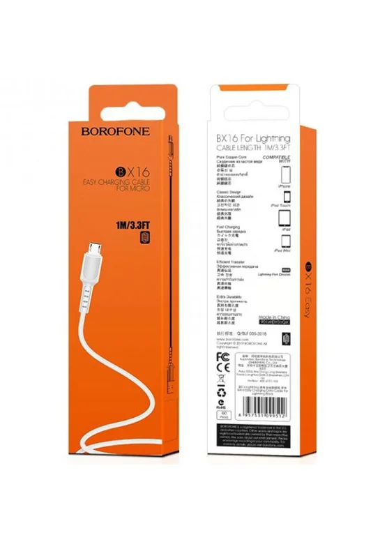 Дата кабель Borofone BX16 USB to MicroUSB (1m) Белый
