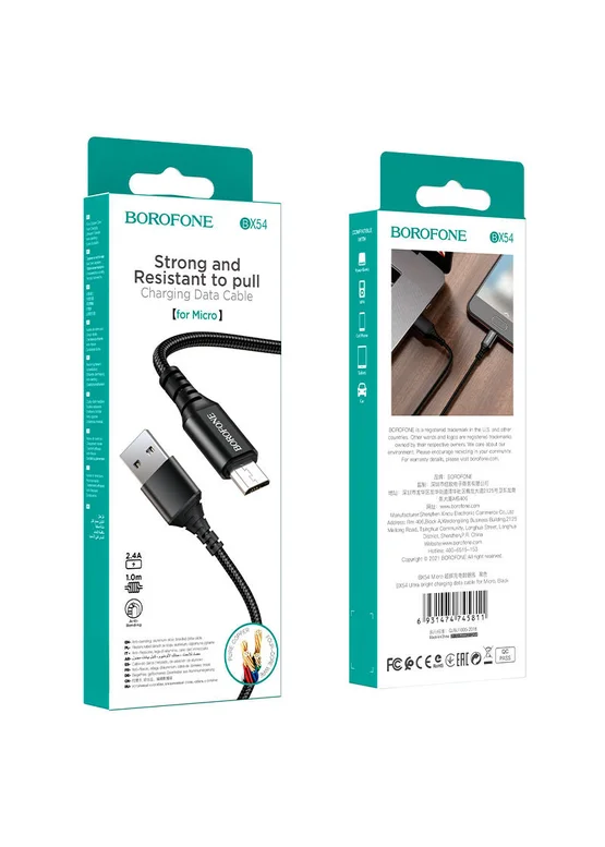 Дата кабель Borofone BX54 Ultra bright USB to MicroUSB (1m) Черный