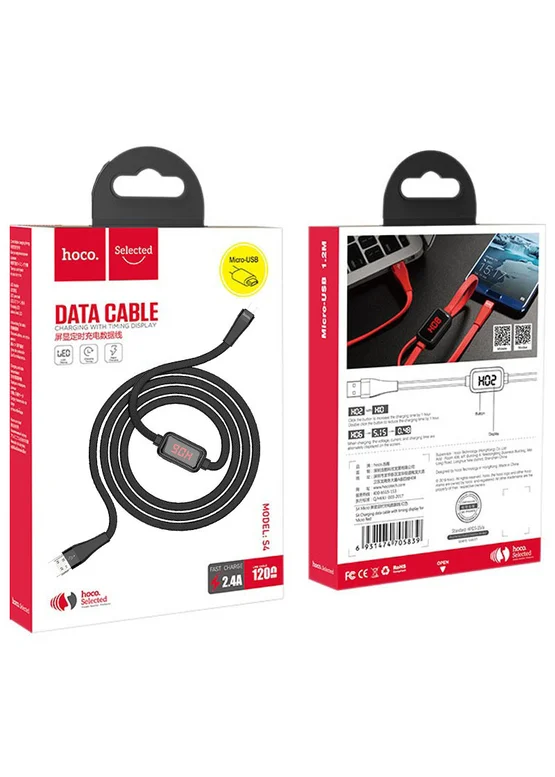 Дата кабель Hoco S4 "With Timer" USB to MicroUSB (1.2m) (Черный)