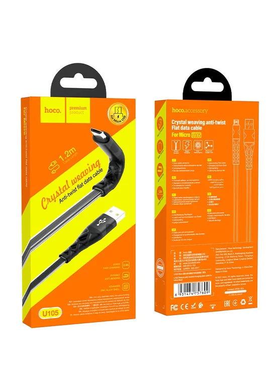 Дата кабель Hoco U105 Treasure USB to MicroUSB (1.2 m) Черный