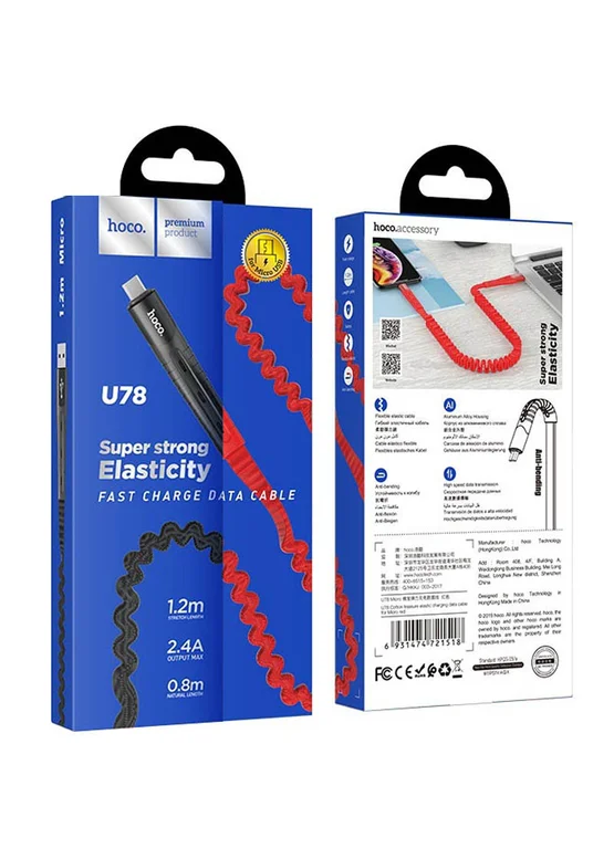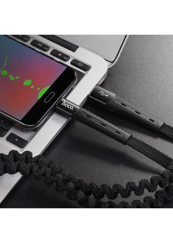 Дата кабель Hoco U78 "Cotton treasure elastic" MicroUSB (1.2М) (Черный)