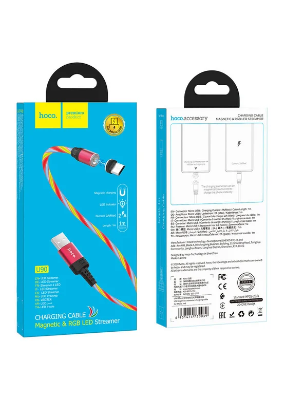 Дата кабель Hoco U90 "Ingenious streamer" MicroUSB (1m) Красный