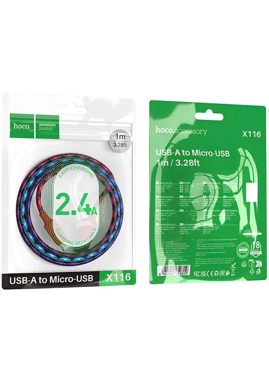 Дата кабель Hoco X116 Meridian USB to MicroUSB 2.4A (1m) Gradient Purple Mix
