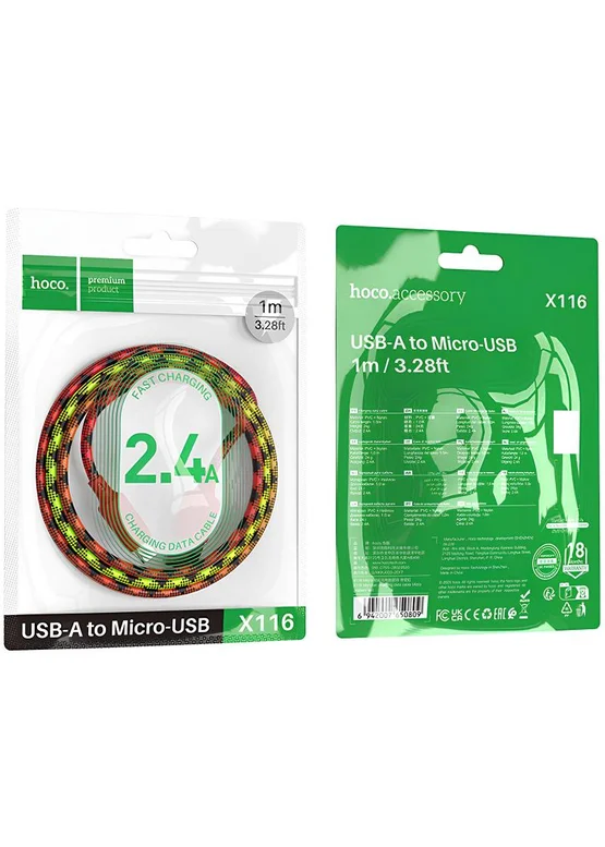 Дата кабель Hoco X116 Meridian USB to MicroUSB 2.4A (1m) Gradient Red Mix