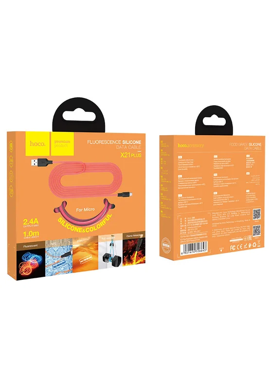 Дата кабель Hoco X21 Plus Fluorescent Silicone MicroUSB Cable (1m) (Красный)