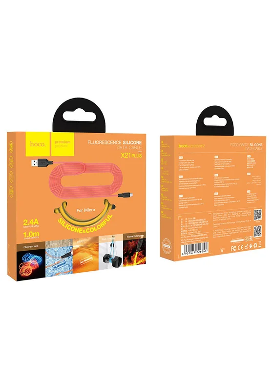 Дата кабель Hoco X21 Plus Silicone MicroUSB Cable (1m) Black / Orange