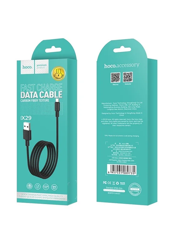 Дата кабель Hoco X29 Superior Style Micro USB Cable 2A (1m) (Black)