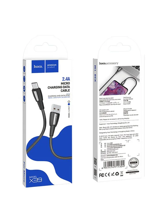 Дата кабель Hoco X39 "Titan" MicroUSB (1m) (Черный)
