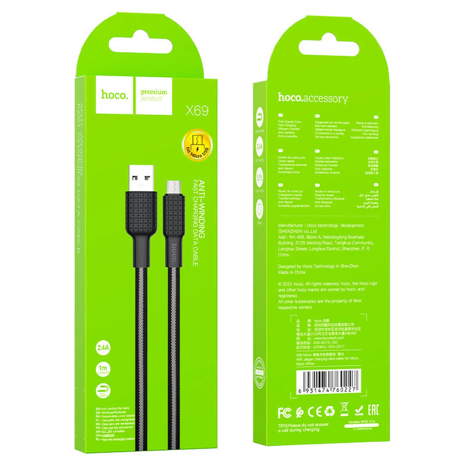 Дата кабель Hoco X69 Jaeger USB to MicroUSB (1m) Black / White